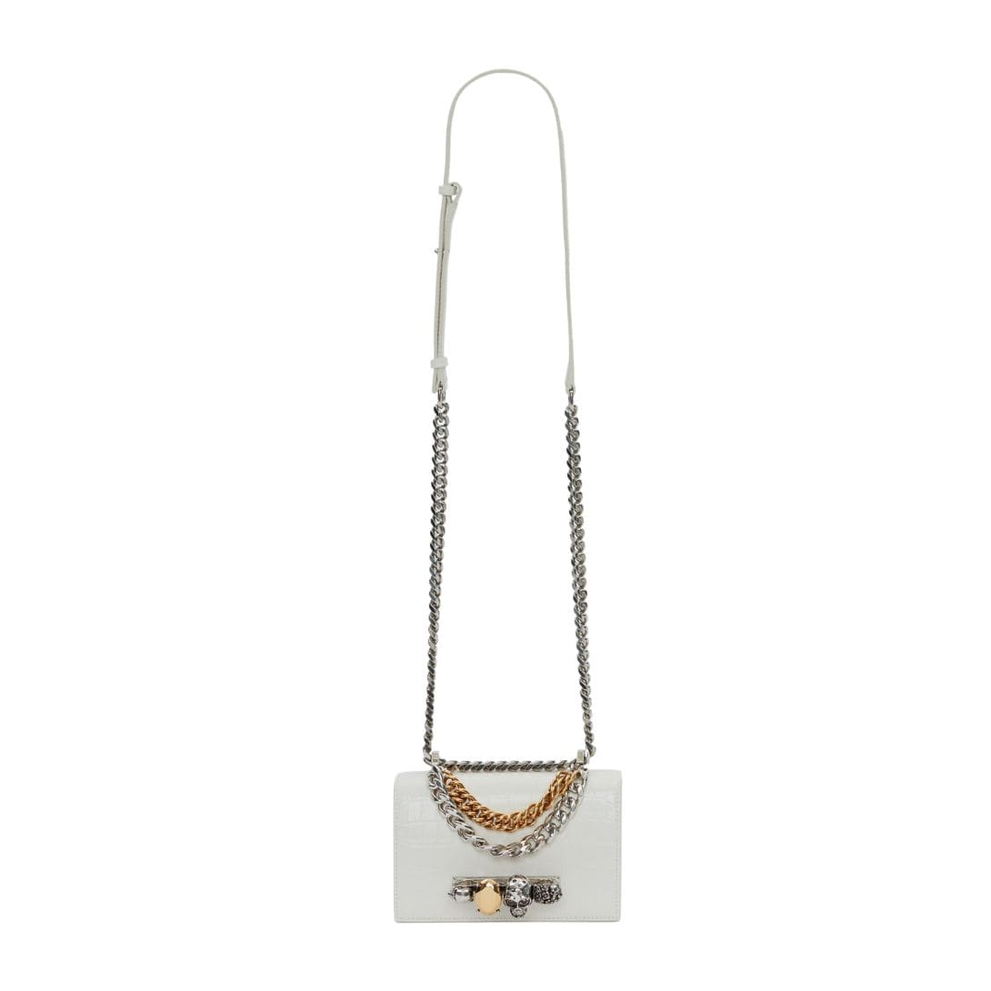 ALEXANDER MCQUEENÂ WOMANS MINI JEWELLED SATCHEL WITH CHAIN IN LVORY